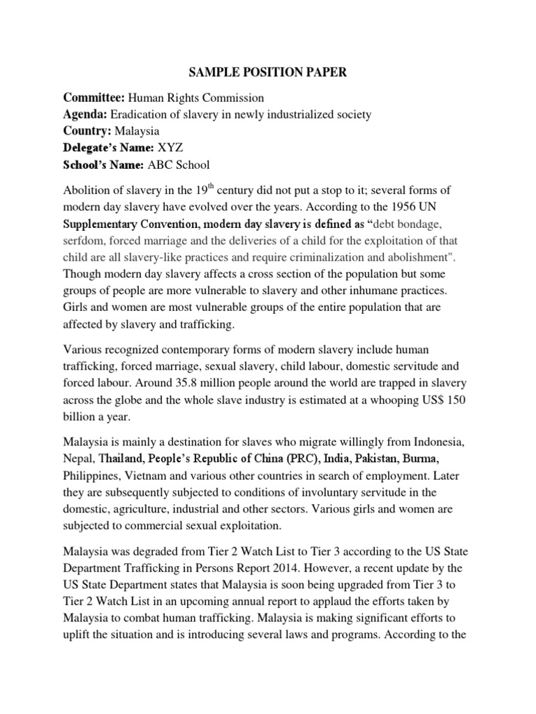 Introduce your topic with some basic background information. Writing a position paper sample is a serious job. Writing a position paper means you have to present a personal view from many sides. Ghana strongly believes that u.n. I'll show you what resources you can use to research, how to write a thesis. A position paper is a diplomatic statement of your country's position on the issues before your below is (1) an annotated position paper sample to help guide you in formatting (2) a sample. A position paper presents an arguable opinion about an issue. Security council topic area a: At amun black lives matter. Position papers are published in academia, in politics, in law and other domains. Position papers are an integral part of the committee experience. United nations security council country: Writing position papers serves enhance the quality of preparation of the delegates and to focus their thoughts on the topic areas.